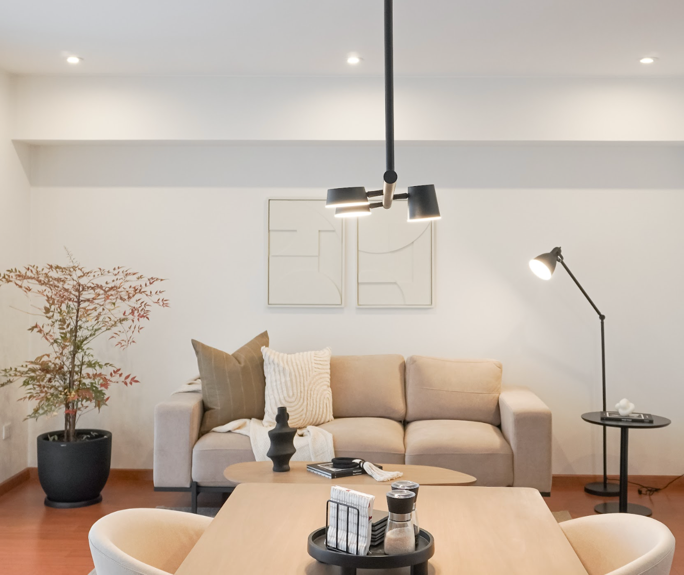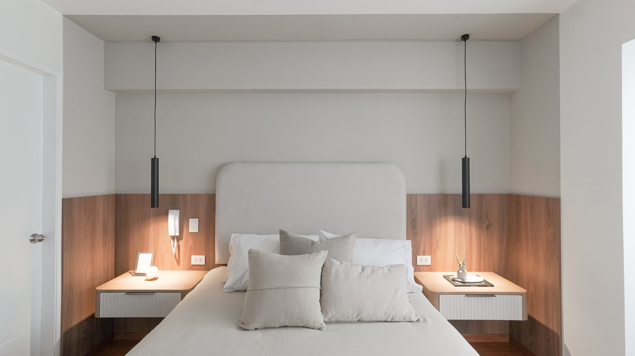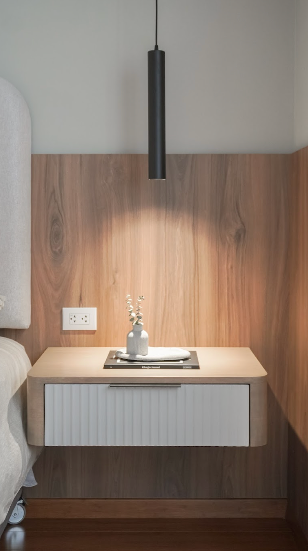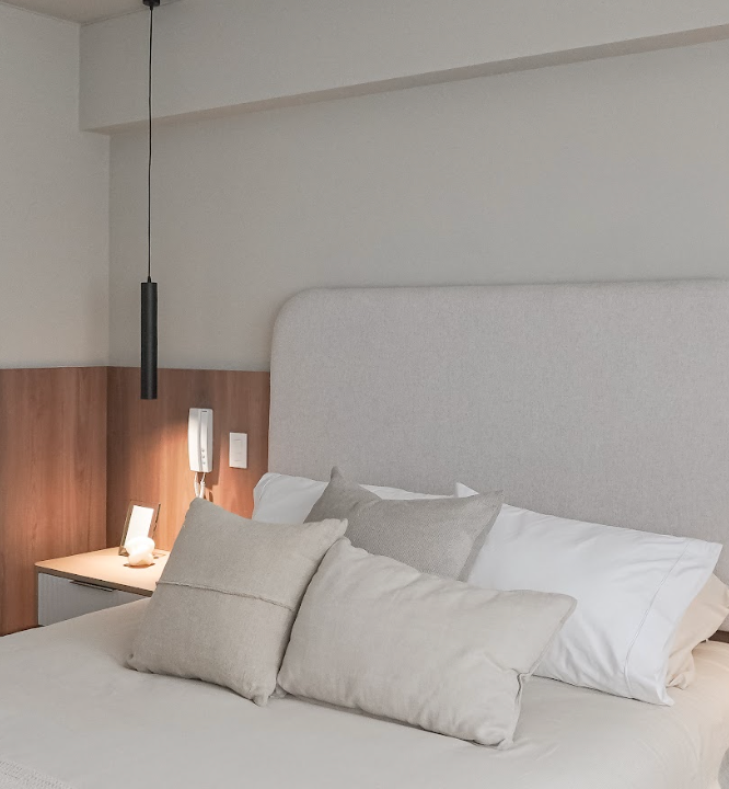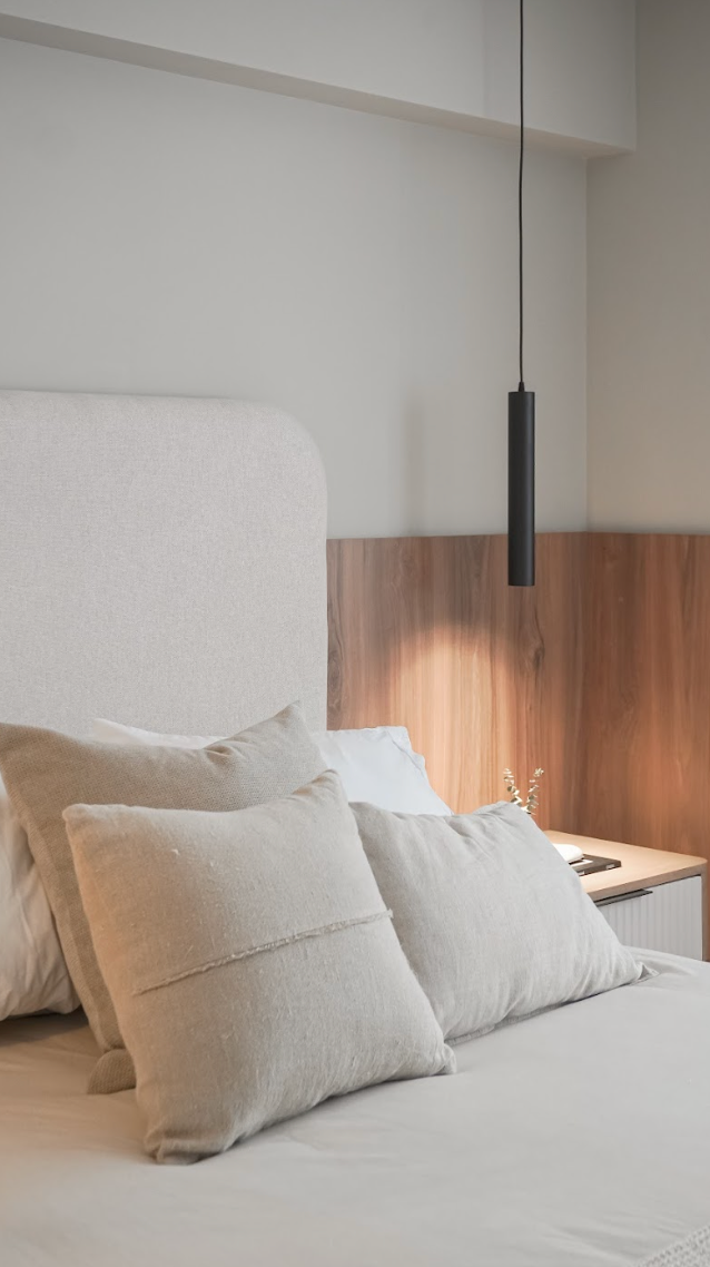 Acabados y texturas que se entrelazan con una paleta cálida y acentos en negro, transportándote a un ambiente acogedor donde cada detalle te invita al descanso.