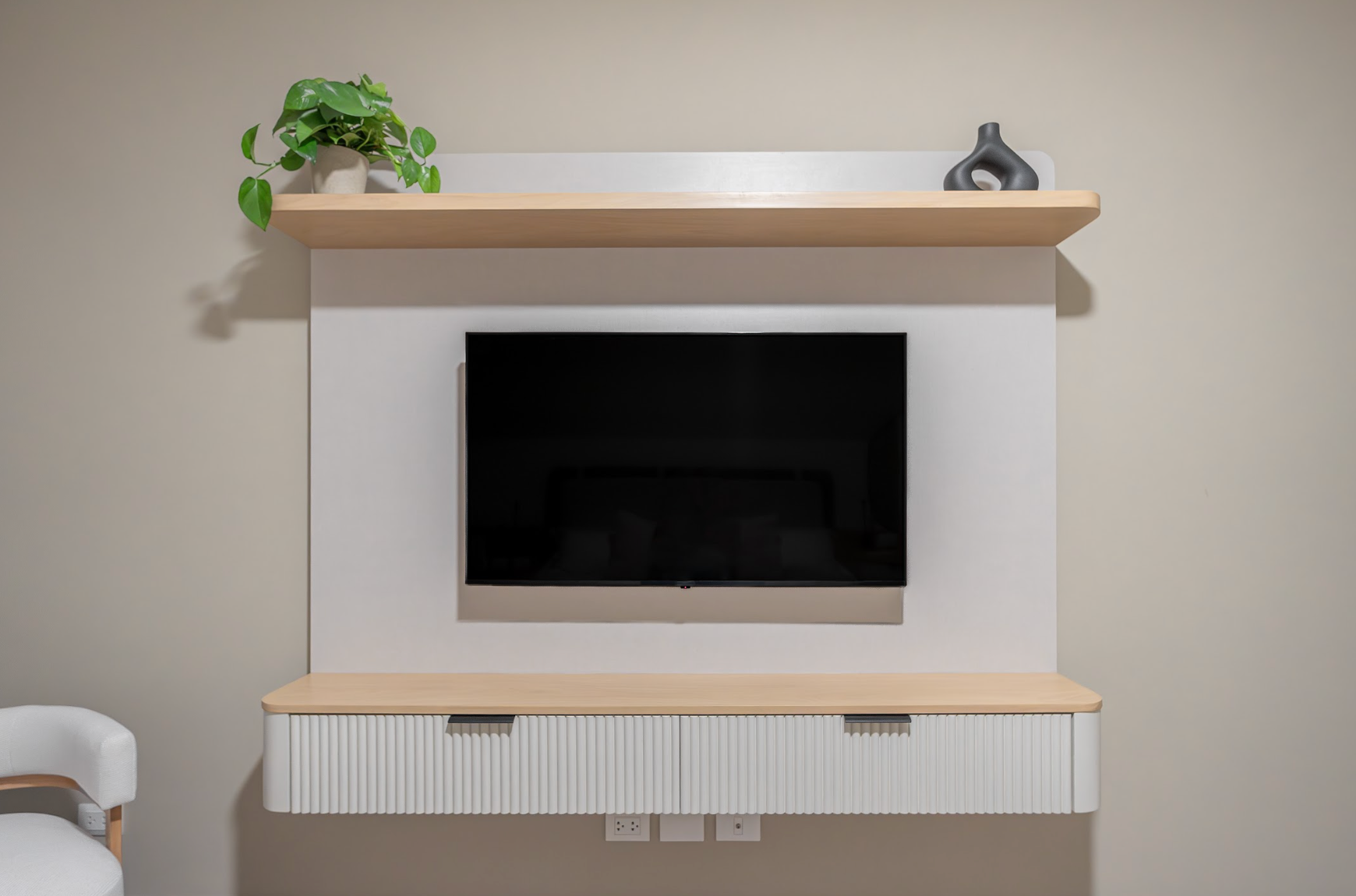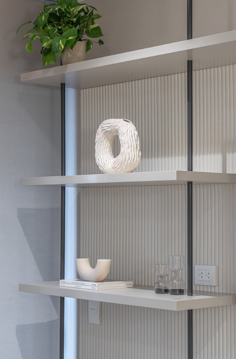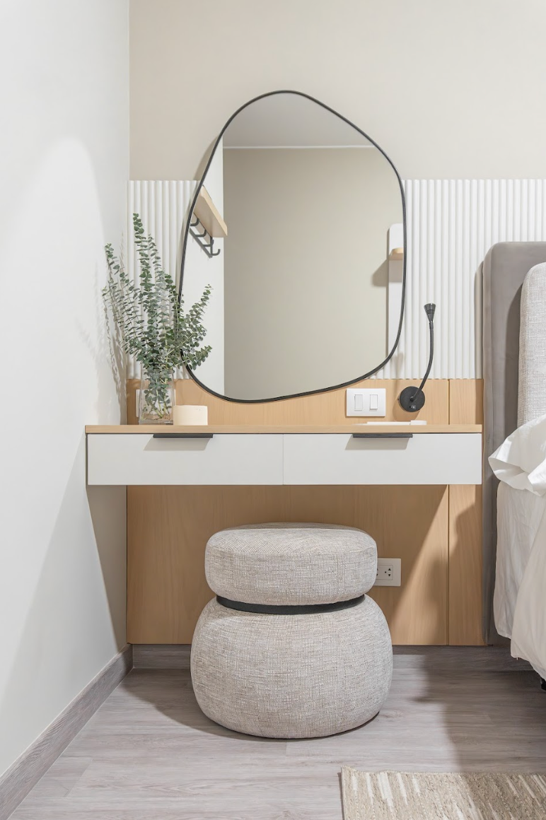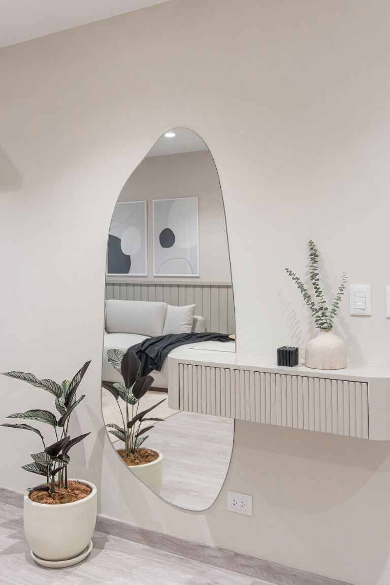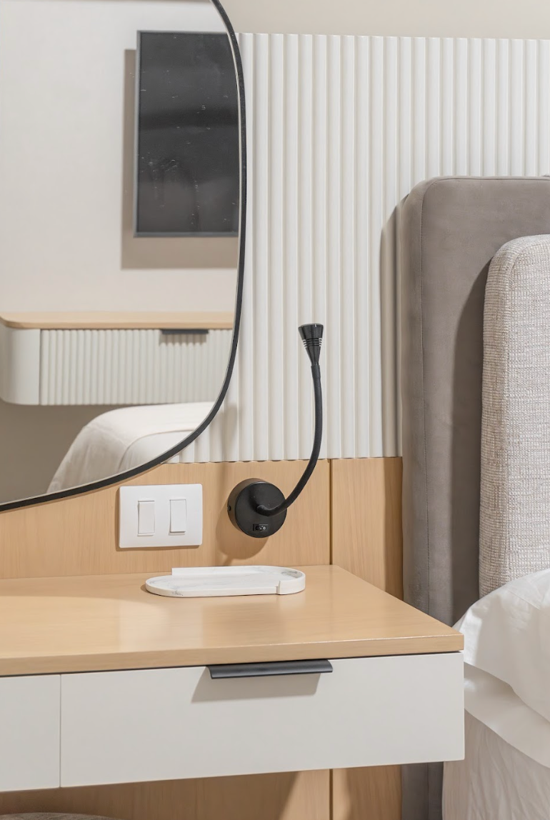 Para la sala comedor y dormitorio de Carla & Erick optamos por espacios donde se respire calma solo con estar ahí. La iluminación y la curaduría de elementos, le dan esa calidez que te invita a quedarte un ratito más.