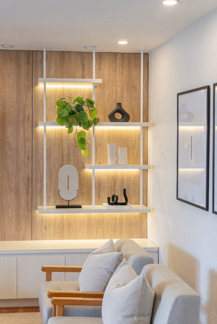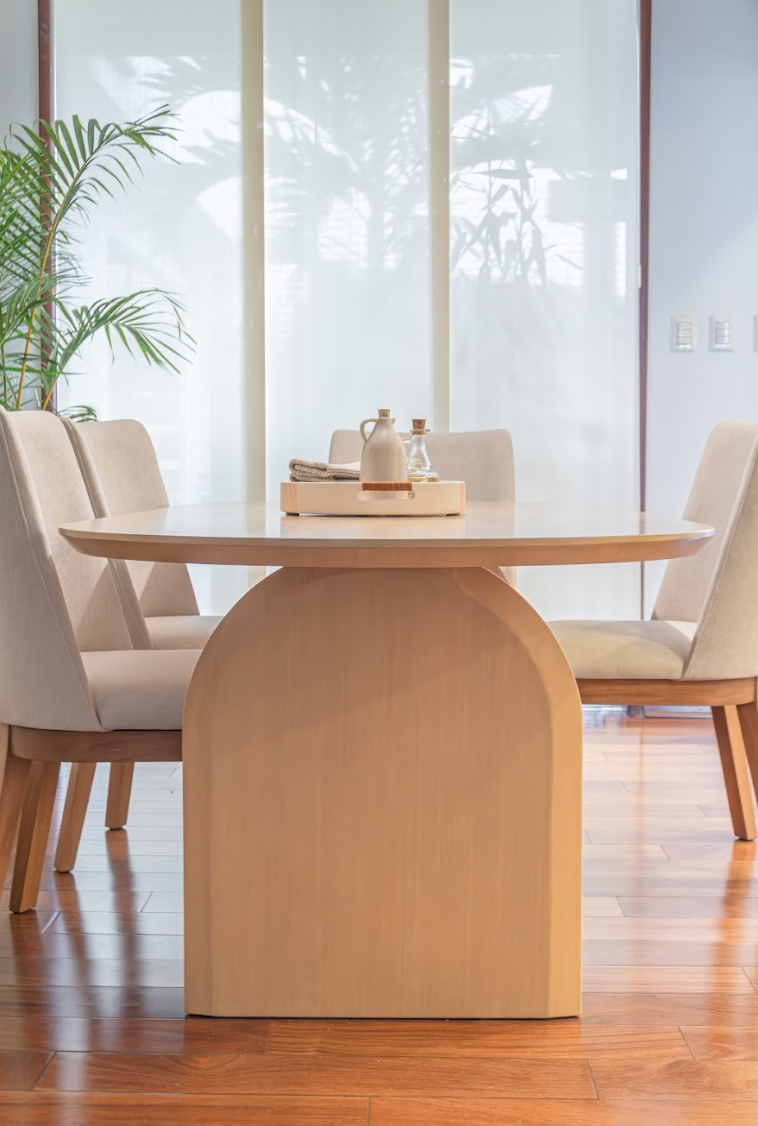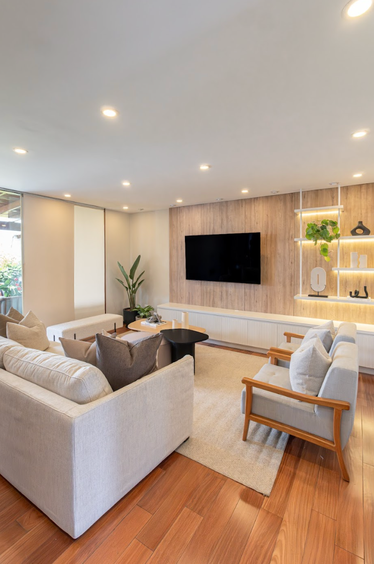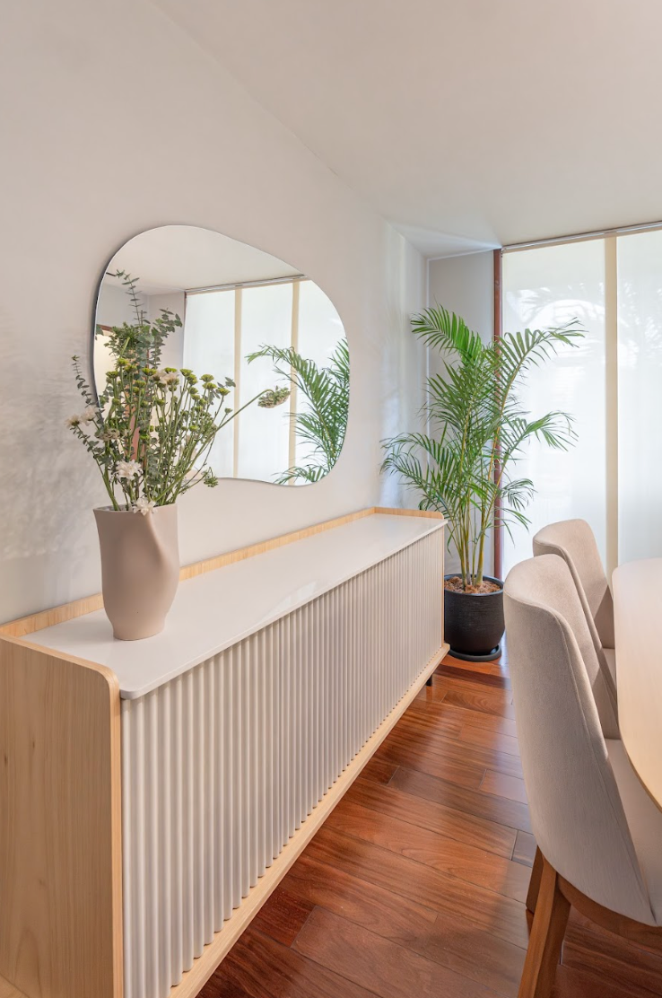 Conoce la sala comedor de Eduardo: un espacio moderno y cálido que juega con colores que se complementan y acabados que conversan entre sí, creando un look versátil y vibrante. La retroiluminación, las plantas y las siluetas orgánicas le suman ese toque final que te hace sentir en casa.