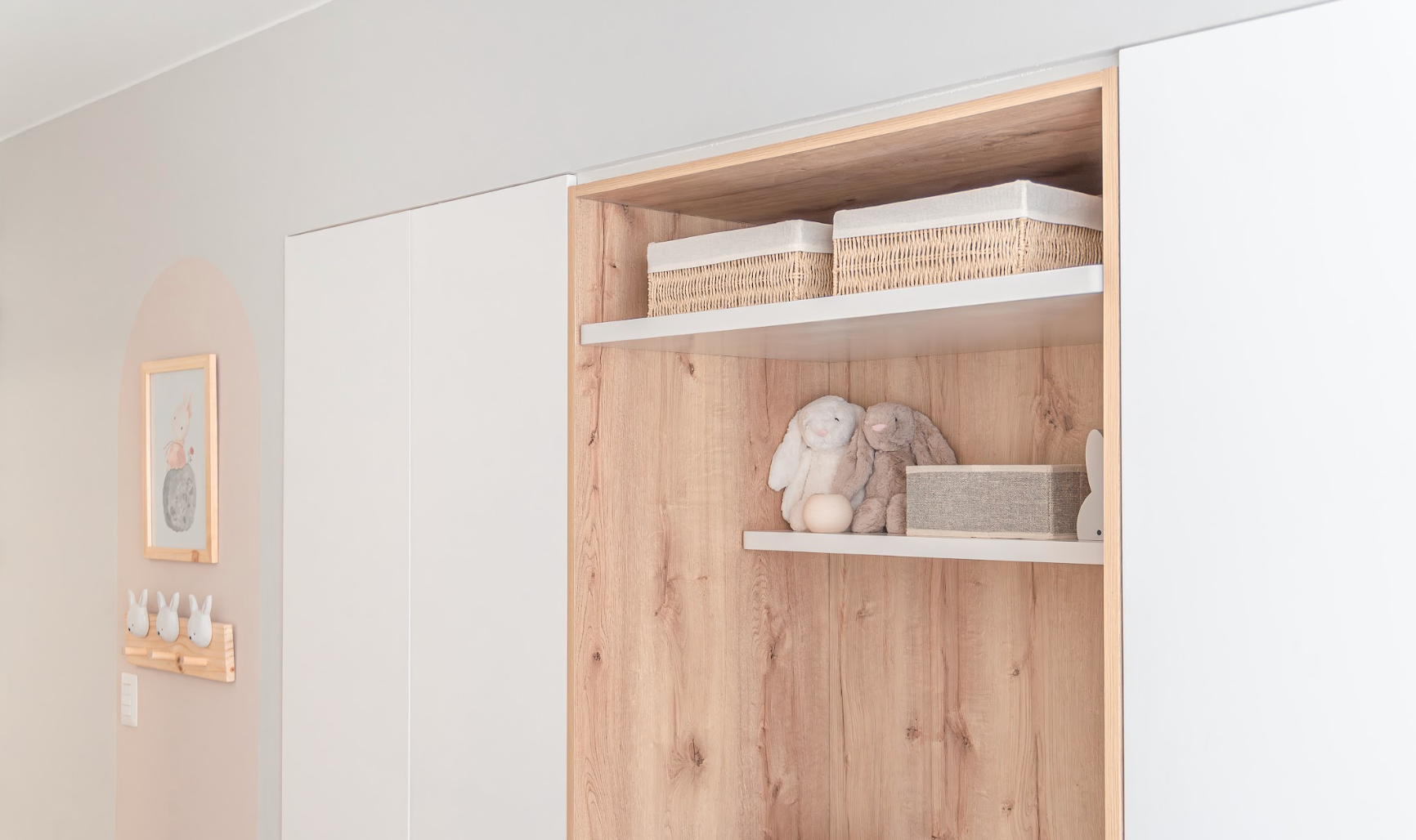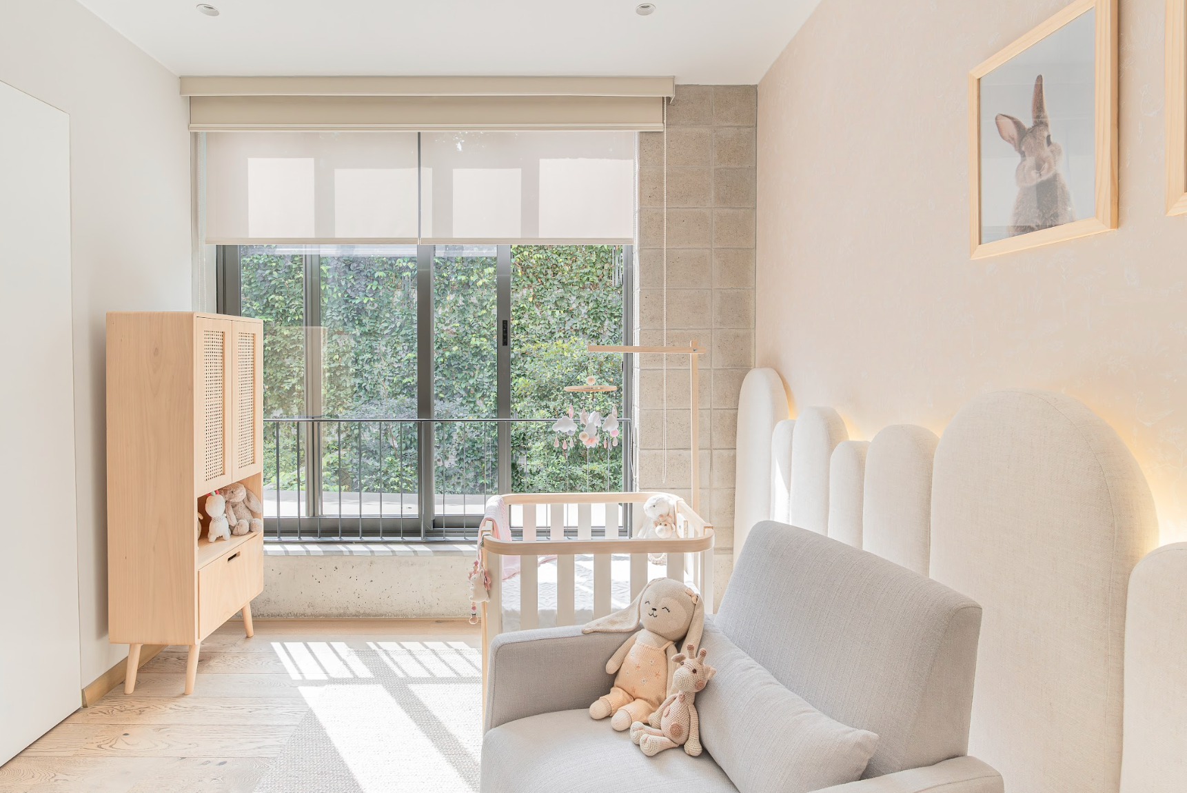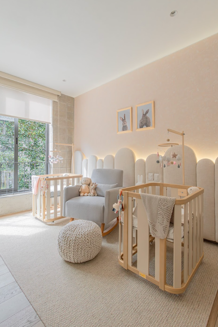 Ya que es un espacio para mellizas, buscamos que el diseño se adapte a sus necesidades a medida que crezcan, con colores suaves y muebles versátiles.