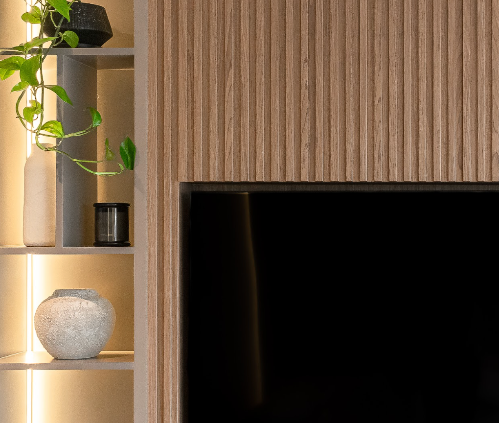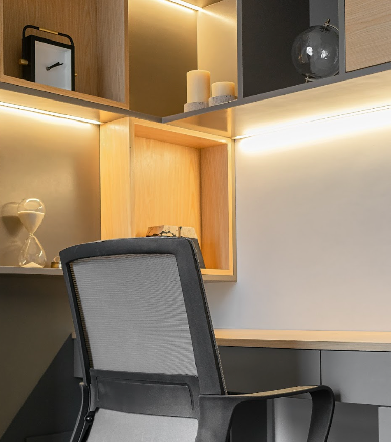 ¿Exploramos los ambientes diseñados para Juan Diego? Combinamos tonos naturales y cálidos y acentos en negro. La retroiluminación en el mobiliario y la suma de detalles le da ese confort que todos buscamos en nuestros espacios.