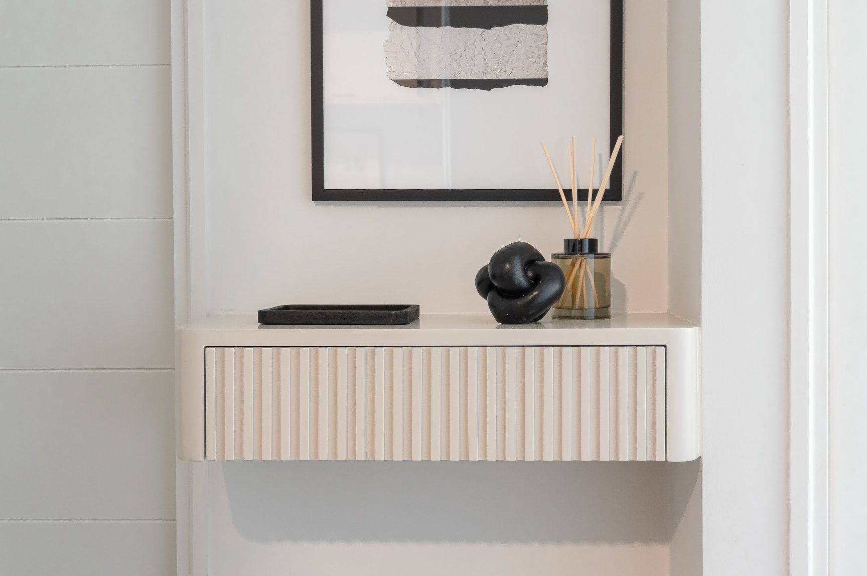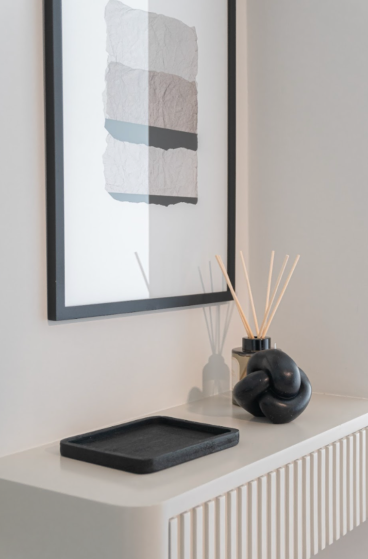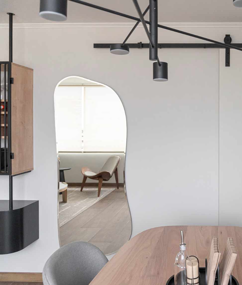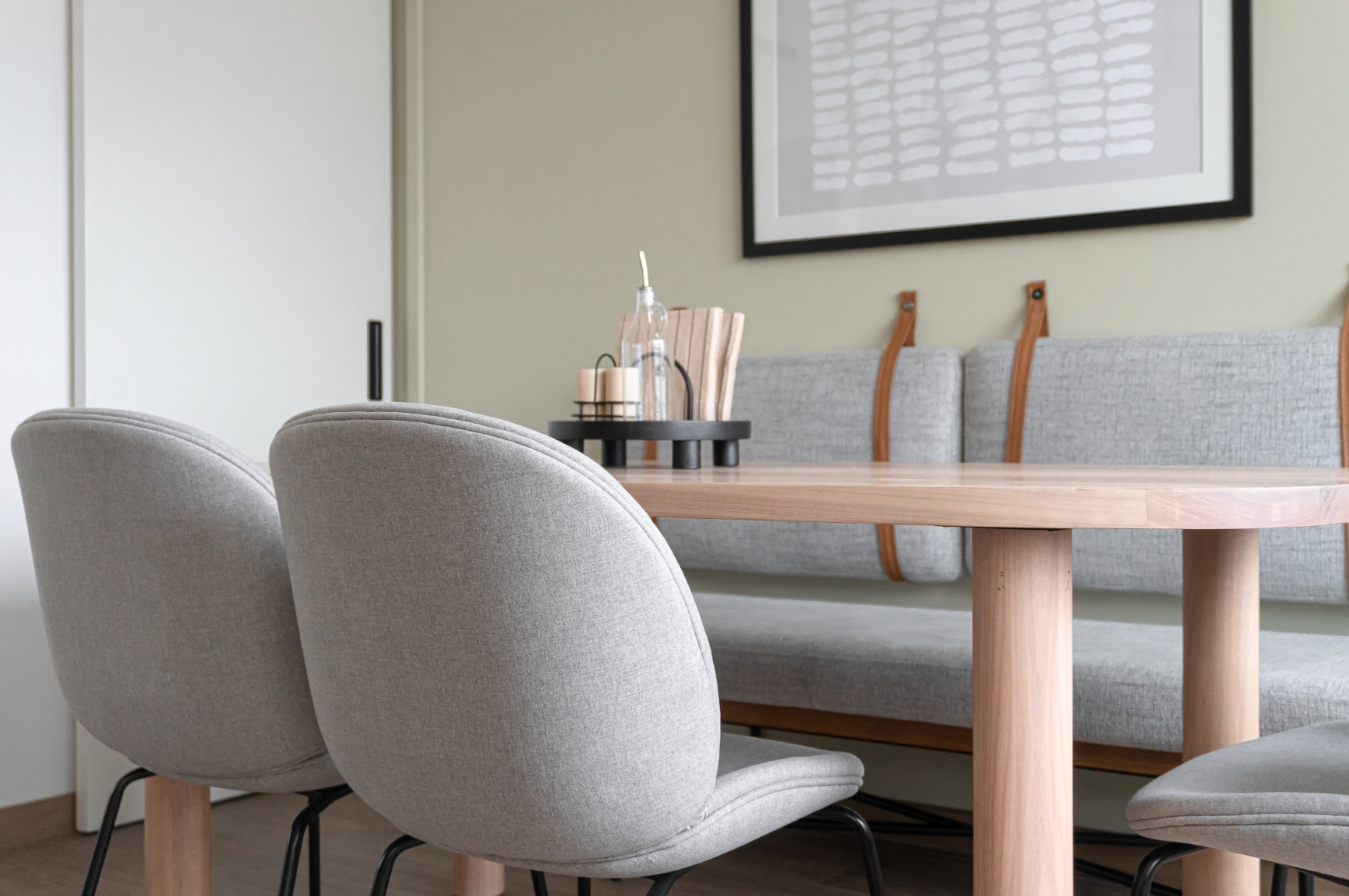 Nos encanta darle vida a nuestros diseños trabajando con acento de color. Amamos como quedó el verde como remate visual para la sala comedor de Laura & Juan. Junto a las texturas, mobiliario de madera y acentos en negro creamos un espacio que transmite calma y, lo más importante, refleja el estilo de nuestros clientes.