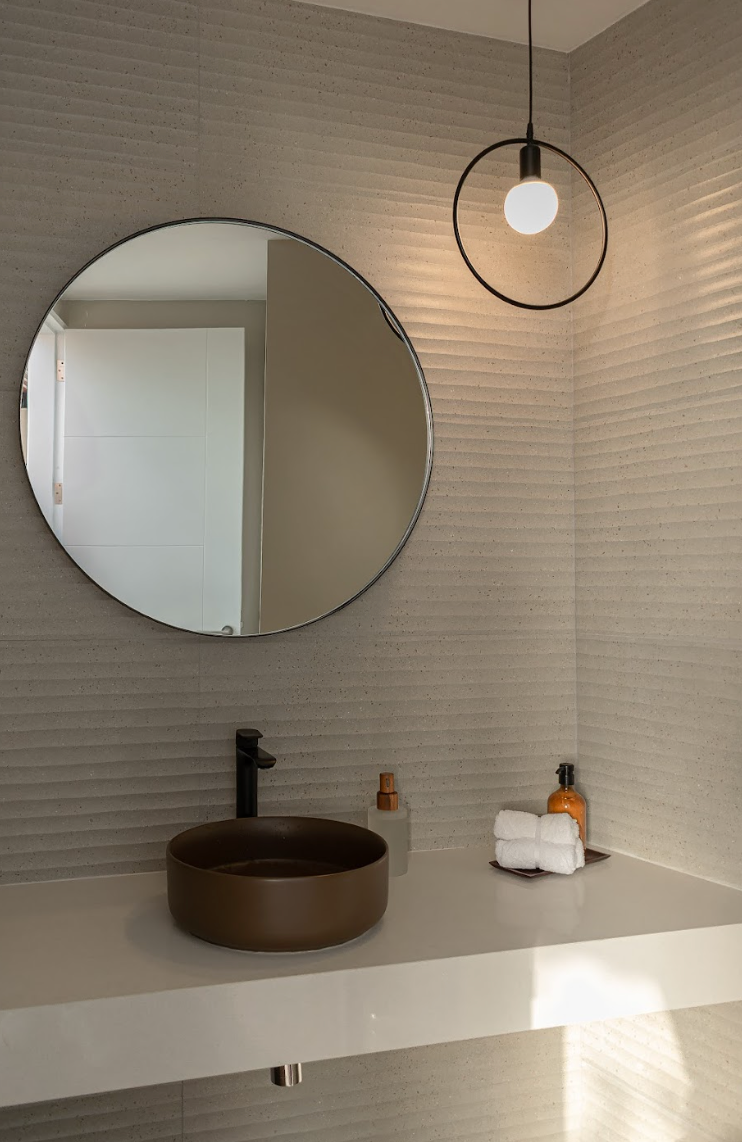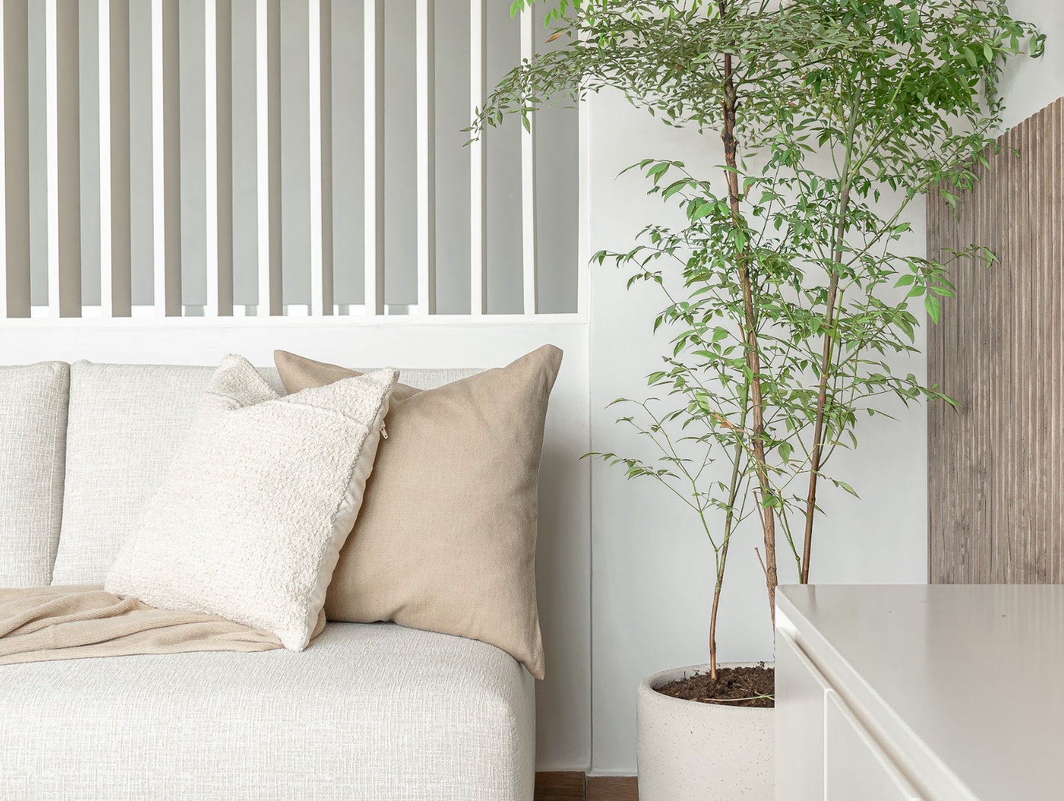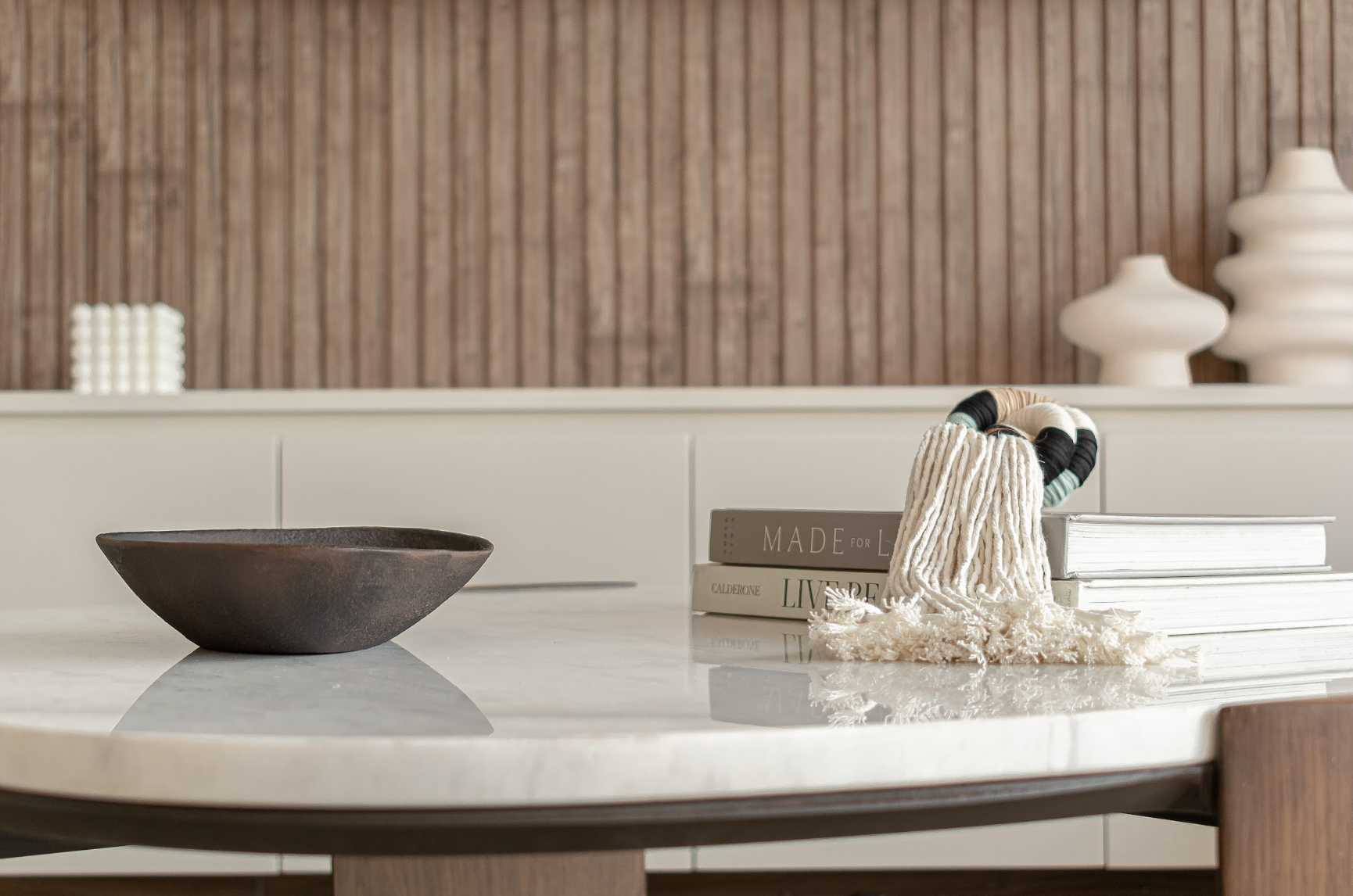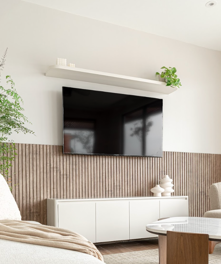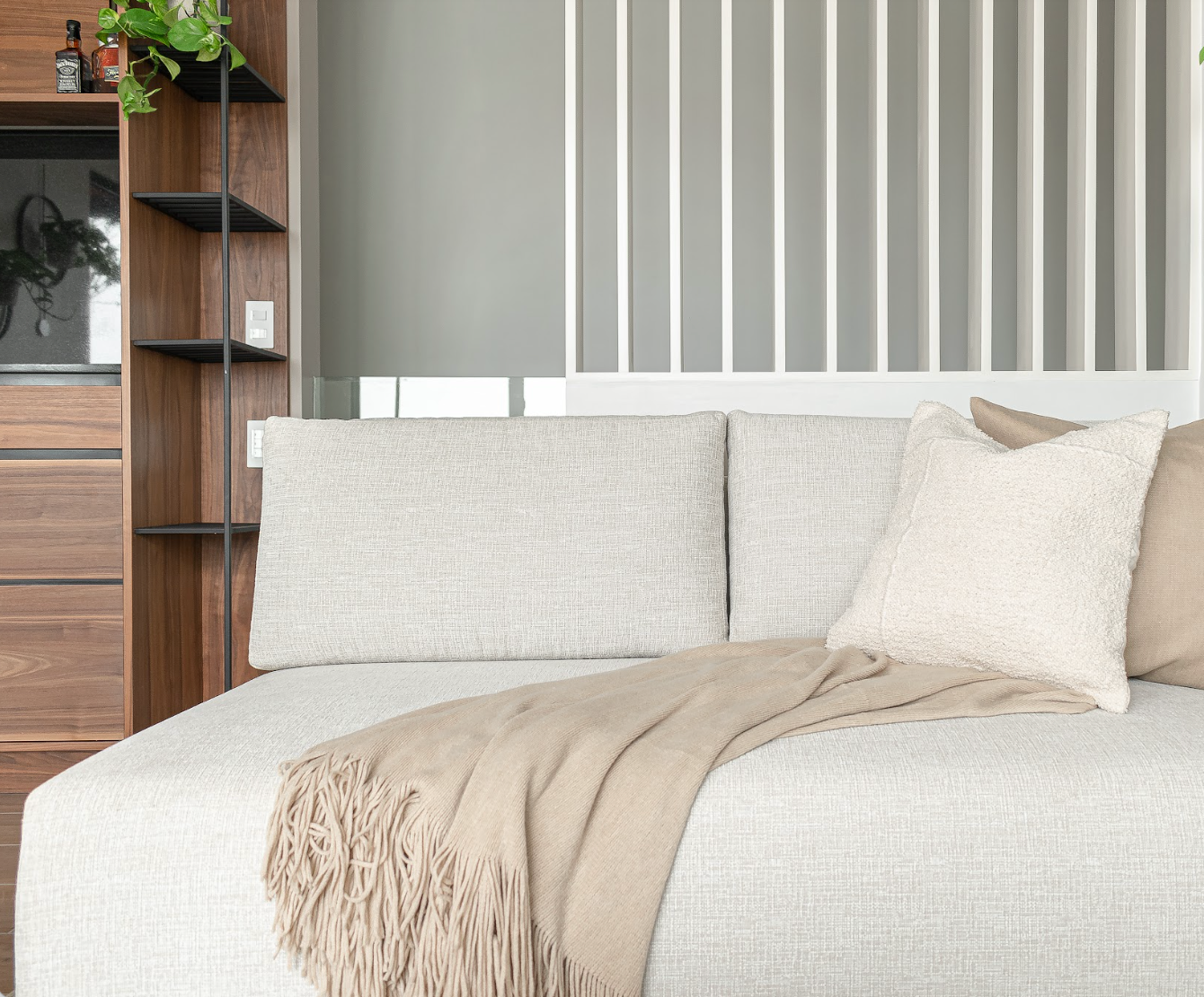 Un espacio que genere calma. Eso quisimos lograr en la sala de estar de Paloma & Cristóbal, un lugar donde reinan los tonos nude y se acompañan muy bien de acentos en madera.