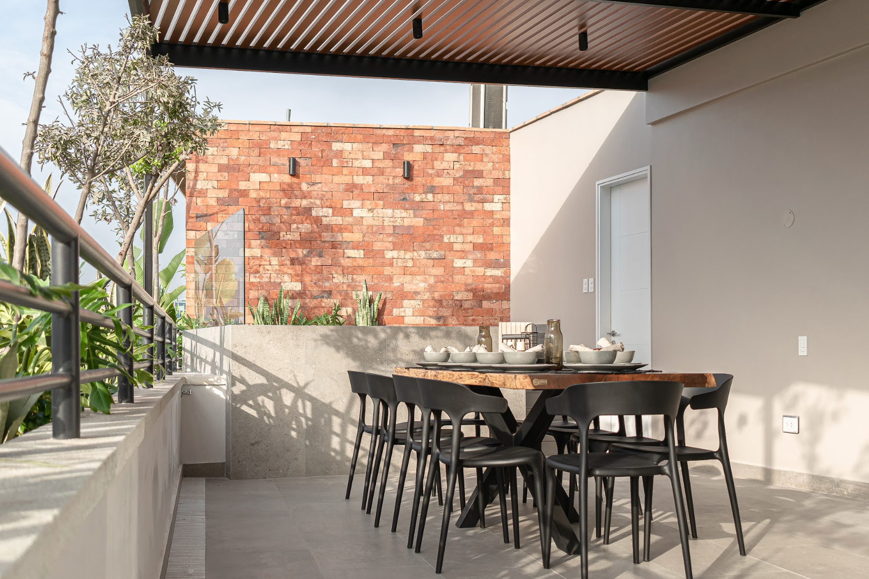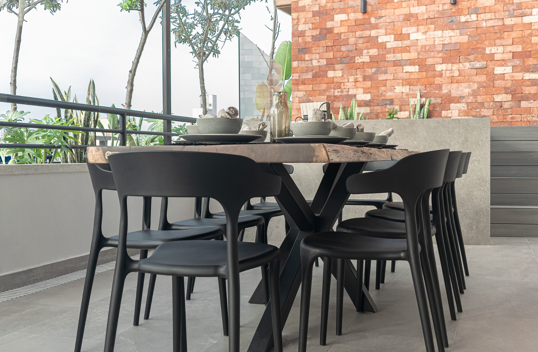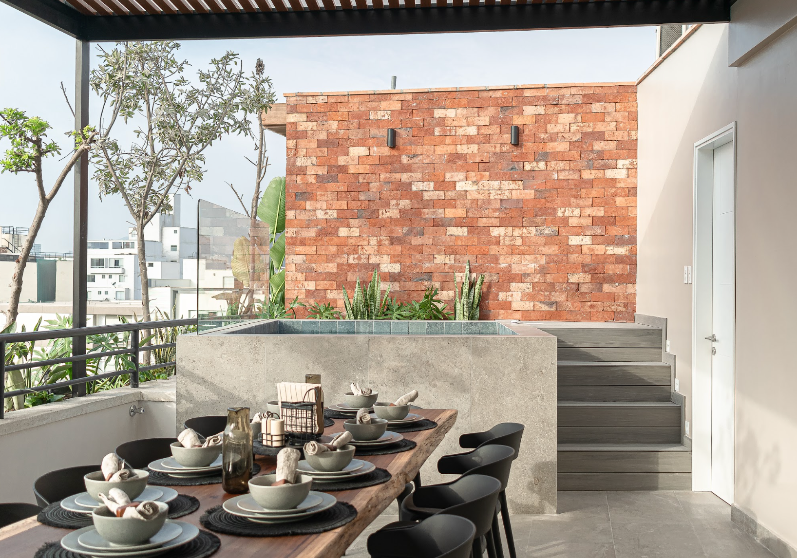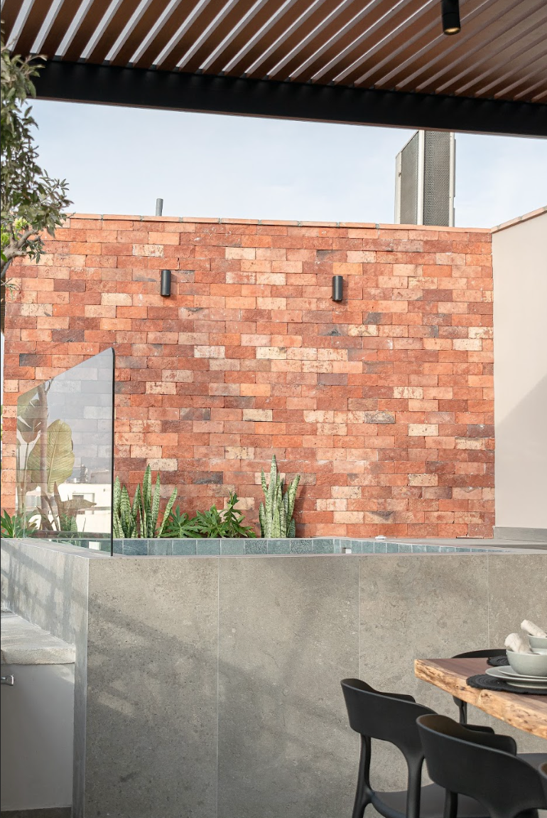 Amamos el rococho y mucho más en las terrazas. Este tipo de enchape le suma mucha personalidad al espacio y genera un ambiente cálido que te provoca ocupar.