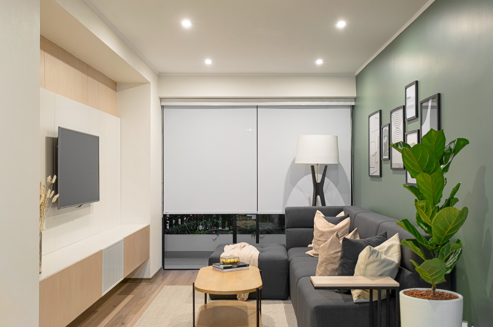 En la sala comedor de Totty & Michelle, el acento de color verde unifica el espacio y crea un contraste perfecto con los tonos cálidos y neutrales.