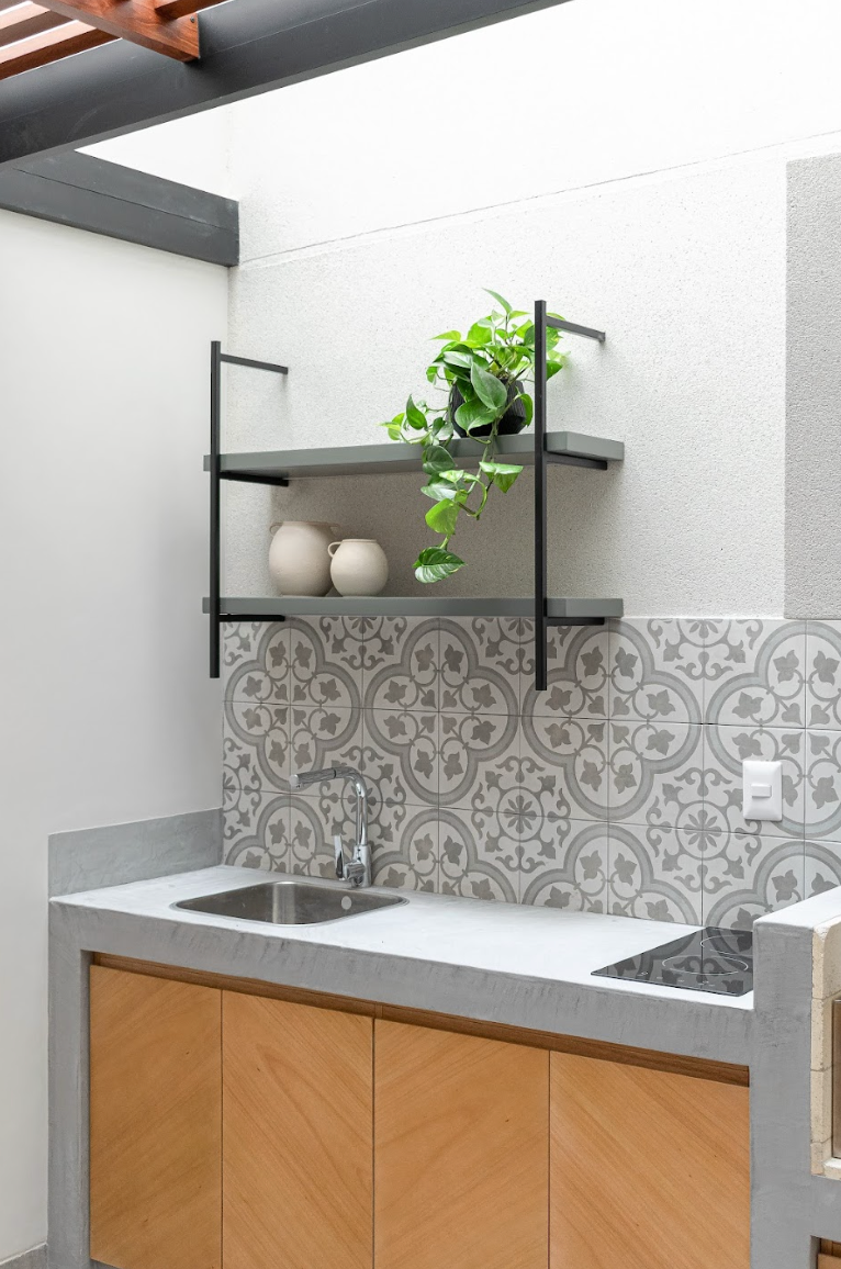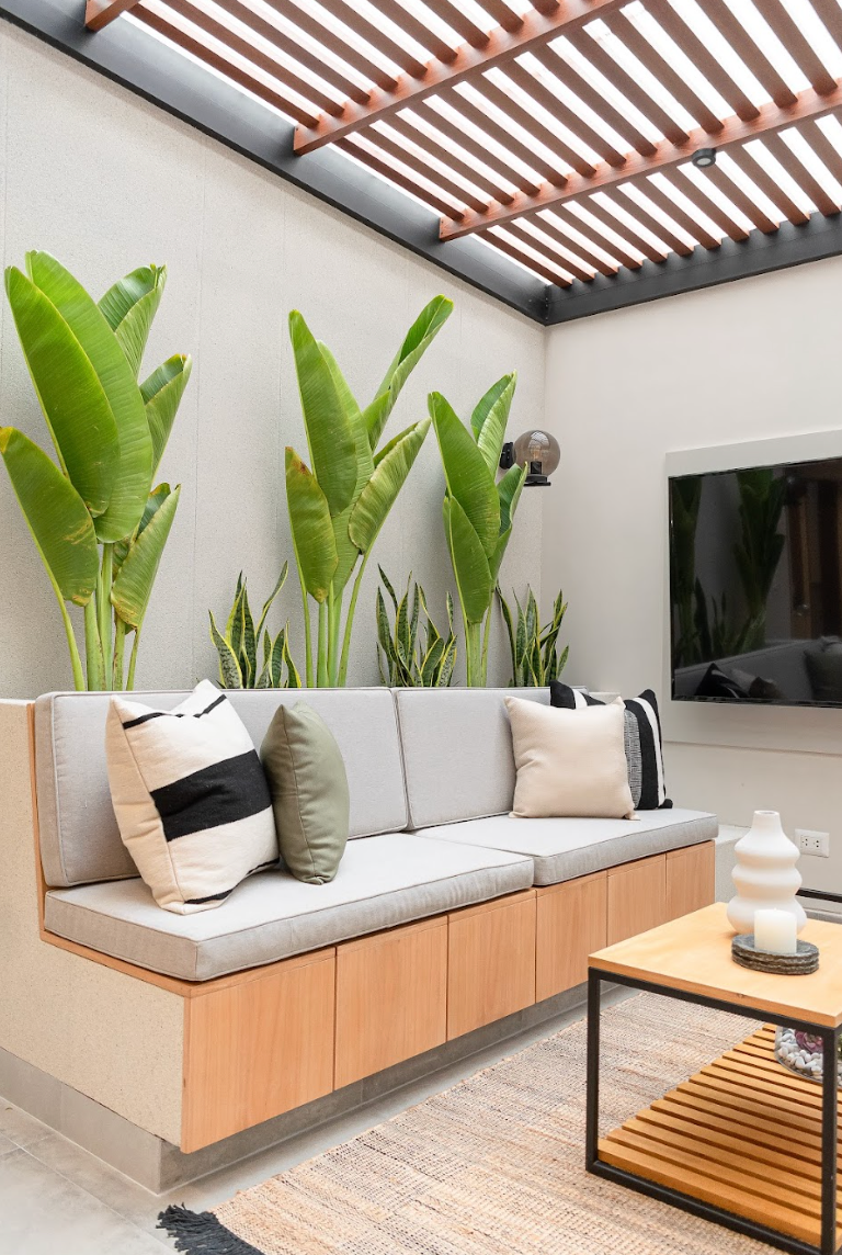 Nos encontramos con un gran patio sin techar y decidimos aprovecharlo para convertirlo en la terraza para el departamento de Verónica y Julio. Asimismo, incluimos un dormitorio de servicio y una lavandería, optimizando el espacio al máximo.
